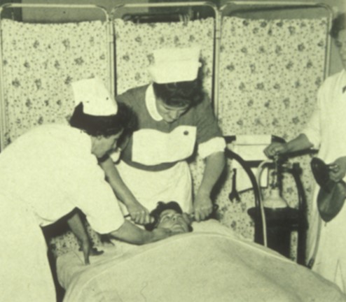 A patient being administered ECT as a form of inducing seizures